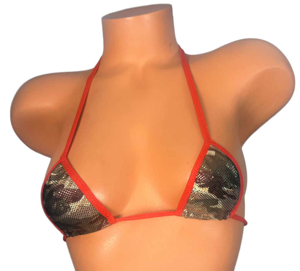 Metallic Olive Green Camouflage Red Trim Micro Triangle Top