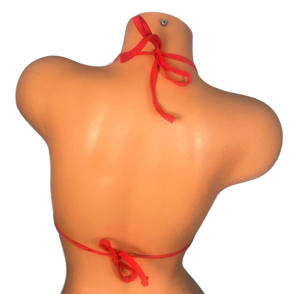 Micro top, please note these tops are MICRO mannequin is an A cup and is wearing XS these tops are so fun and some of my favorite to wear if you want minimal coverage you wear the smallest size more coverage you go up to the desire size.