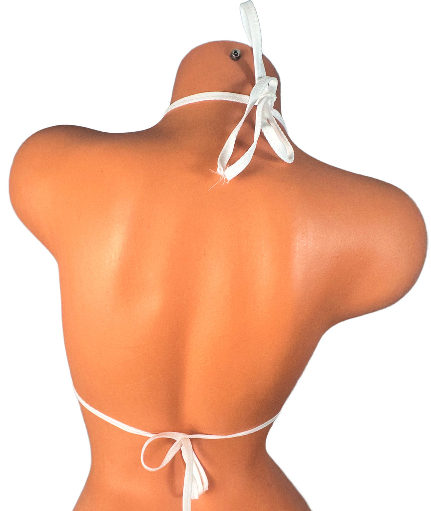 Micro top, please note these tops are MICRO mannequin is an A cup and is wearing XS these tops are so fun and some of my favorite to wear if you want minimal coverage you wear the smallest size more coverage you go up to the desire size.
