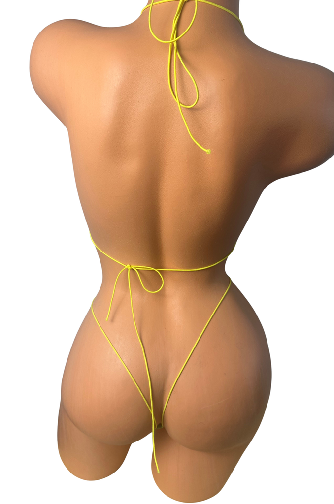 Lime Green Dot Foil Metallic Yellow string Mini Bikini